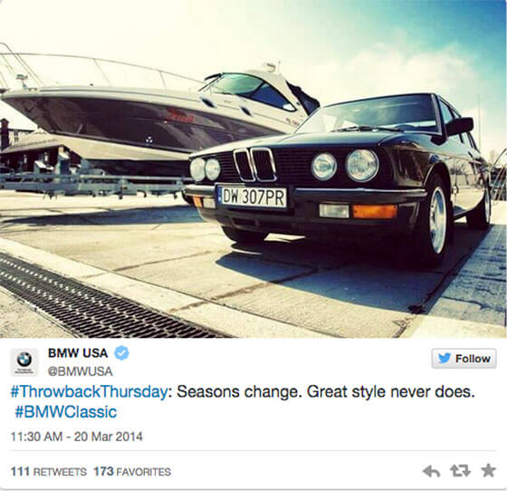 BMW пробуждает ностальгию своих подписчиков с помощью хештега #ThrowbackThursday в Twitter: