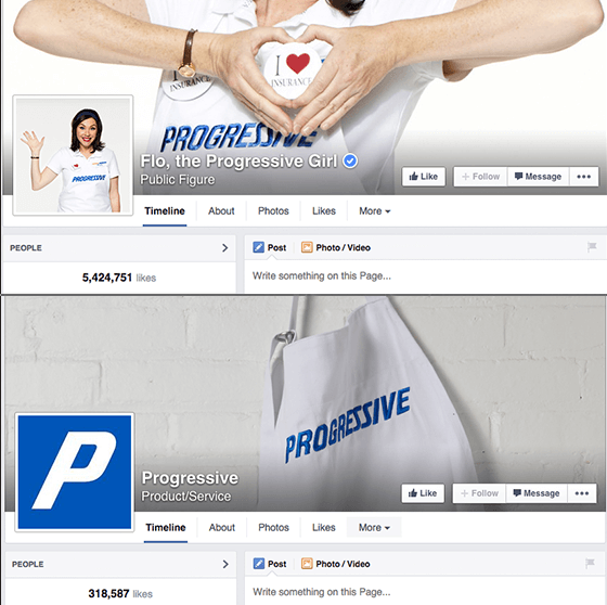 У обезличенной брендовой страницы Progressive на Facebook 315 000 подписчиков, в то время как у талисмана бренда — Flo — 5,5 млн подписчиков.
