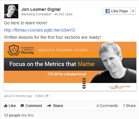 Этой ссылкой Джон Лумер поделился 23 декабря в 8:05 утра. Заметьте, что этот пост был рекламным и был опубликован за 2 дня до Рождества, что могло отрицательно сказаться на органическом охвате.