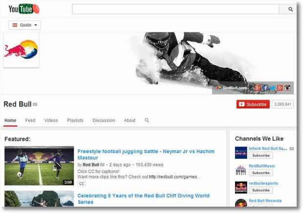 Высший пилотаж в использовании YouTube – это превратить его в медиа-платформу, когда ваша компания превращается из продавца серверов, софта, обуви или напитков в настоящую медийную компанию. Отличный пример того, как компания «зарабатывает» внимание пользователей, а не покупает его – это Red Bull.