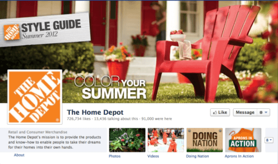 Home Depot настроил свою страницу так, что комментарии подписчиков отображаются в верхней части timeline, однако, бренды должны быть осторожны с этим, т.к. в топе может оказаться сплошной негатив.