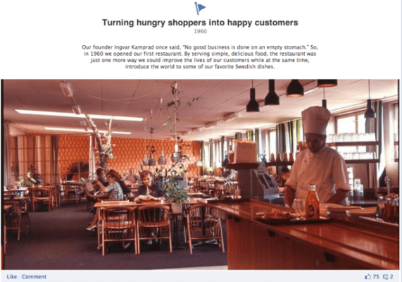 Магазин шведской мебели Ikea создаёт очень привлекательный timeline в Facebook, ежедневно загружая контент, чтобы сохранить интерес и вовлеченность армии из 858 000 подписчиков.