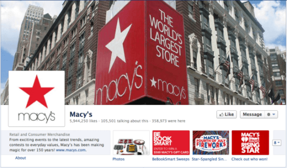 Macy's известен также организацией ежегодных крупнейших фейерверк-шоу («Macy's 4th of July Fireworks»), которые проходят 4 июля в День независимости США. Компания выкладывает видео и фото с ежегодных шоу фейерверков на своей брендированной странице, которые, судя по лайкам и комментариям, пользуются там огромным успехом.