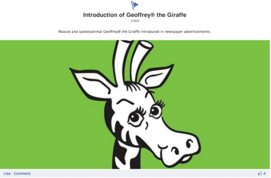 У Toys ‘R’ Us также заполнена хронология, из которой можно узнать, что, например, Жираф Джеффри был создан в 1960 году.