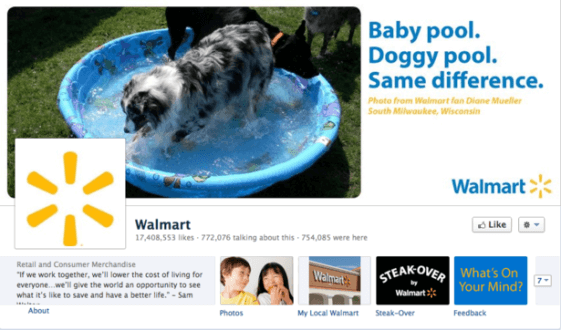 Walmart - другой розничный магазин, который воспользовался timeline Facebook, чтобы продемонстрировать развитие бренда во времени. Хроника компании отображает картинки начиная с 1962 года практически без пропусков. Однако многие из обновлений просто показывают, когда Walmart открыл очередной магазин в новом государстве. Являясь одним из крупнейших брендов в мире, Walmart имеет более 17 млн. поклонников.