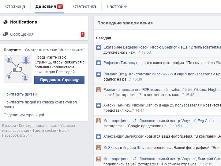 Если вы администратор какой-либо фан-страницы, то справа от обложки вы видите данные по лайкам, сообщениям, охвату пользователей для каждого поста, количеству уведомлений.
