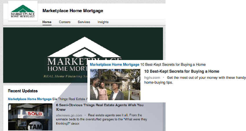 размещает советы и идеи для своей аудитории, занятой в сфере покупки недвижимости. Размещайте публикации, связанные с экспертизой в вашей отрасли.