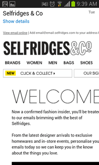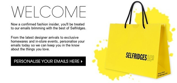 Например, Selfridges просит пользователей персонализировать предпочтения по рассылке, чтобы «держать их в курсе самых актуальных новостей», соответствующим призывом к действию.