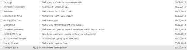 А вот тема письма от River Island скучная и неинтересная – “Email sign up…”.