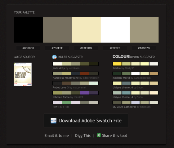 Pictaculous является генератором цветовой палитры, куда вы можете загрузить своё изображение, например, логотип или скриншот домашней страницы вашего сайта, который подберёт подходящую цветовую палитру за несколько секунд.