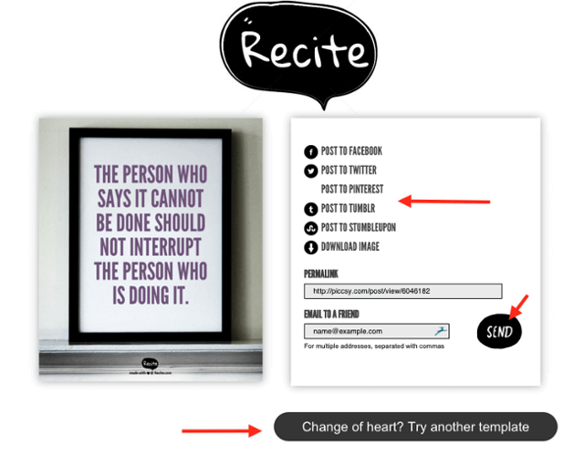 Recite не предлагает большое количество заманчивых опций. Приложение выполняет одну простую функцию – мгновенно превращает ваши слова в изображение, которым можно поделиться.