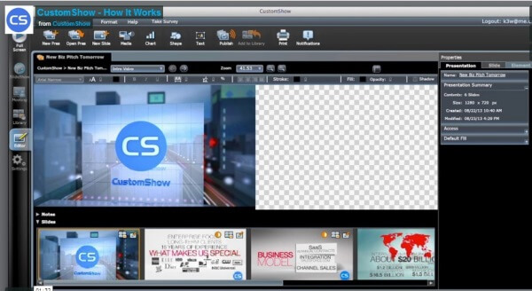 Customshow – программное обеспечение, которое позволяет создавать качественные презентации, просматривать и редактировать их с разных устройств (компьютеры, iPad). Имеет собственную библиотеку слайдов, хранение в облаке. Есть возможность вставки видео, а также загрузки презентаций Powerpoint для дальнейшего их редактирования в Customshow.