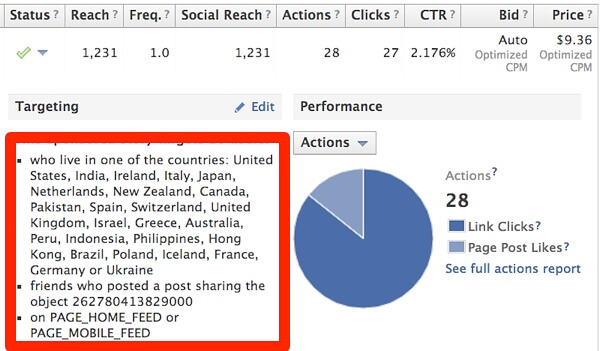 При изменении названия объявления для продвигаемого поста проверяйте таргетинг. Facebook по умолчанию таргетирует ваш пост не только на вашу страну, но и на множество других стран от Ирландии до Индонезии, которые, возможно, не имеют для вас значения с точки зрения таргетинга.