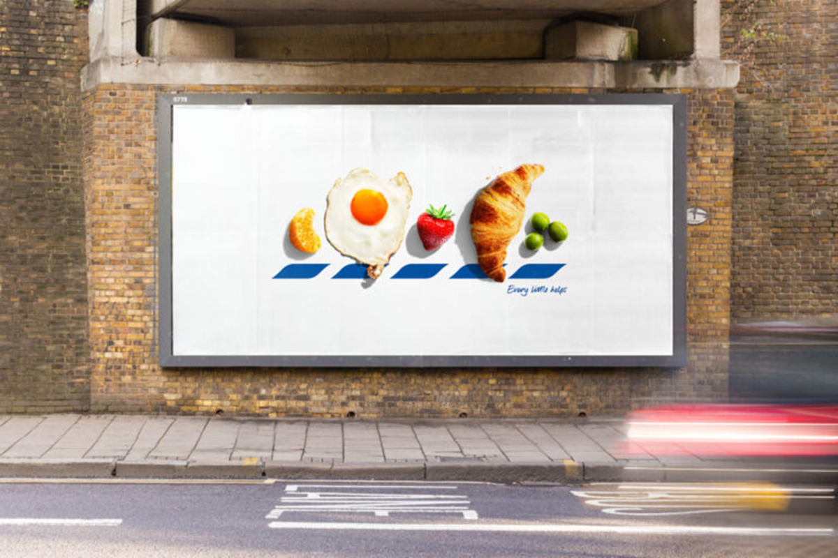 В смелом порыве супермаркет Tesco отказался от своего логотипа, чтобы освободить место на рекламном плакате для свежих продуктов, которые заменили буквы T, E, S, C и O.