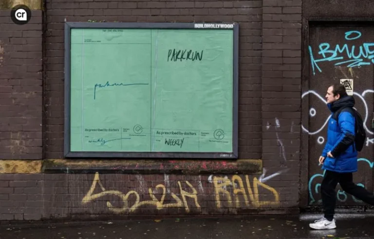 В честь Всемирного дня психического здоровья организация забегов Parkrun разместила «рецептурные плакаты». Рекламная кампания подчеркнула, что прогулки и пробежки в парке в приятной компании регулярно прописываются врачами для лечения тревожности и депрессии.