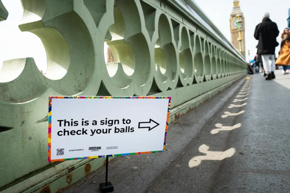Благотворительная организация превратила лондонский Вестминстерский мост в инсталляцию в рамках месяца осведомленности о раке яичек. Странность в архитектурном дизайне 162-летнего моста была использована для передачи мощного сообщения: пора задуматься о своем здоровье.