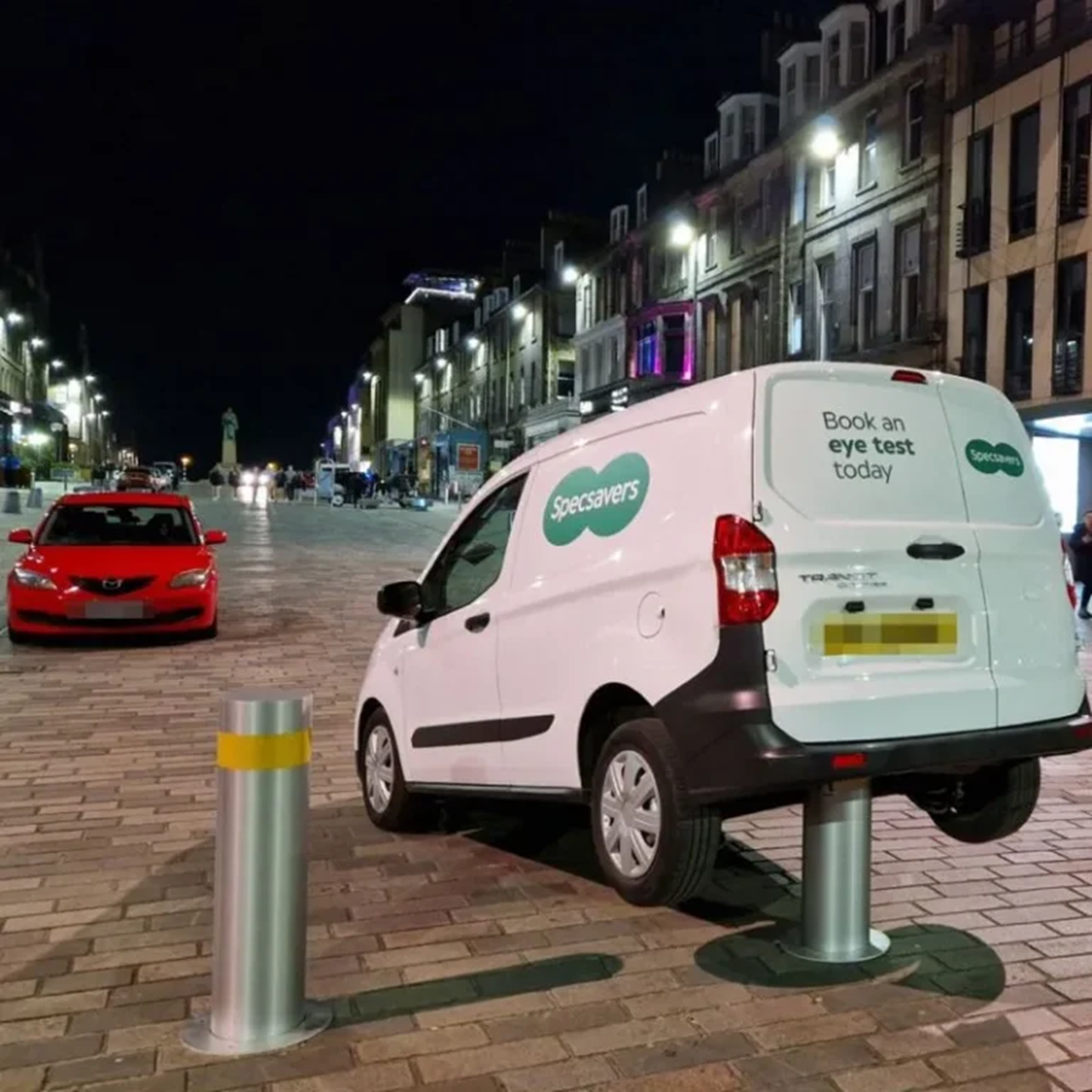 Сеть оптик привлекла внимание к проблеме с плохим зрением, «заехав» автомобилем на поднимающееся ограждение.