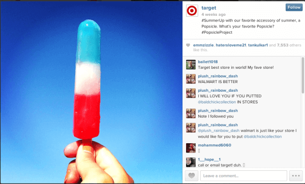 36. Задавайте вопросы о компании или о продукте, заставляйте пользователей говорить о них. Спрашивайте, использовали они продукт бренда сегодня, создайте хэштэг, по которому подписчики смогут выложить фотографии на эту тему. Компания Target, например, задает вопросы типа «Какой вкус фруктового мороженого вам нравится?», а пользователи, в свою очередь, начинают обсуждать бренд в Сети.