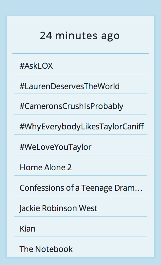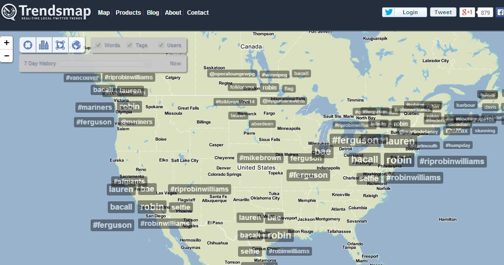 Приложение позволяет отслеживать «трендовые» темы в Twitter на протяжении 24 часов. Поиск ведется по всем странам мира, что очень удобно для социальных кампаний и исследований, в которых географическая привязка играет значимую роль.