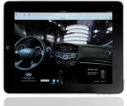 Например, переворачивая планшет или телефон, клиенты могут увидеть панорамный вид в 360° последней модели своего любимого автомобиля, как это сделала компания Infiniti. Такая возможность позволяет потенциальным покупателям исследовать авто так, как если бы они на самом деле находились внутри него. Эта функция может быть использована для объявлений, рекламирующих новый дом и т.д.