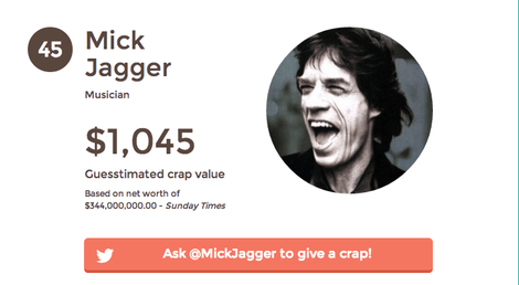 Rehabstudio пришла в голову идея повысить осведомленность общественности о Всемирном дне туалета и благотворительном фонде WaterAid. Чтобы помочь в этом, все желающие отправляли твитты с хэштегом #giveacrap богатым и знаменитым. Мику Джаггеру, например.
