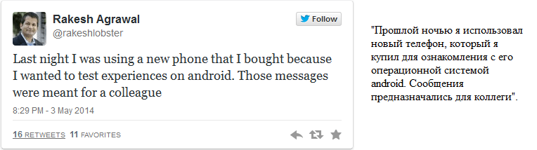 Затем Агравал попытался извиниться, списав все на неполадки в работе его нового телефона: