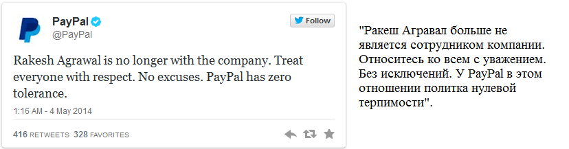 Бывший сотрудник компании PayPal Ракеш ‘Rocky’ Агравал был уволен из-за нескольких оскорбительных сообщений в Twitter. В начале мая он посетил ежегодный джазовый фестиваль в Новом Орлеане, который известен во всем мире не только благодаря отличной музыке, но и своей непередаваемой атмосфере. Видимо, дух американского юга так повлиял на Ракеша, что, поддавшись порыву, он выложил несколько гневных и оскорбительных сообщений в своем аккаунте в Twitter: