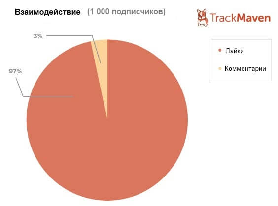 Проще всего поставить лайк, комментарий требует больше усилий. Как показывает практика 500 крупнейших компаний, около 97% активности подписчиков выражается в лайках и только 3% — в комментариях.