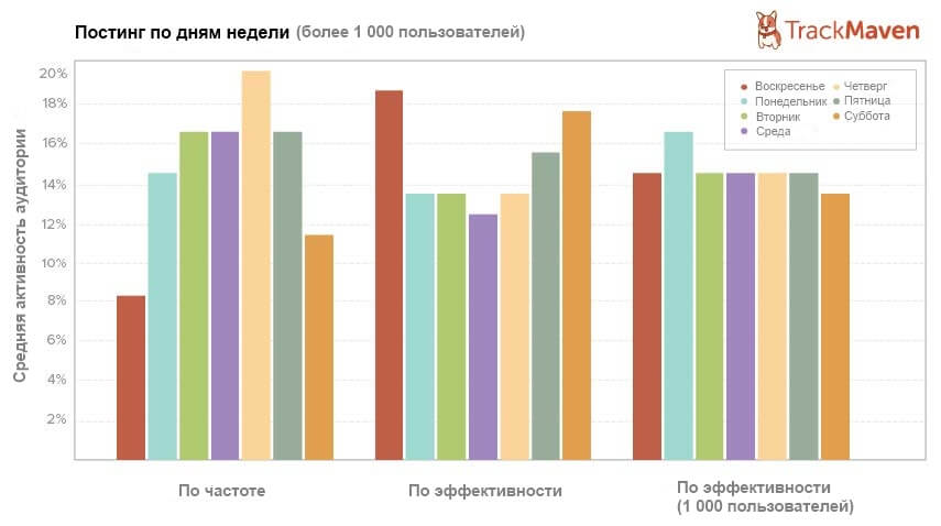 3. Лучший день недели для постинга: большинство предпочитают четверг, а эффективнее воскресенье
