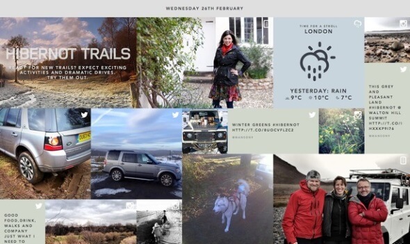 В январе LandRover запустил кампанию #Hibernot, которая была построена вокруг онлайн-центра для зимних поездок, прогулок и мероприятий по всей Великобритании.