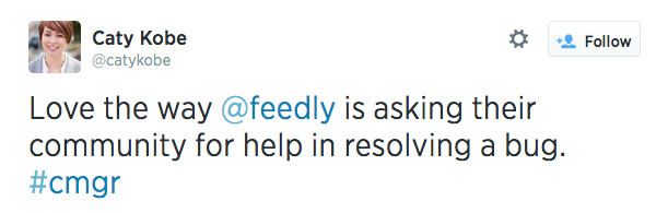 – Нравится, как @feedly просит помощи аудитории в устранении багов.