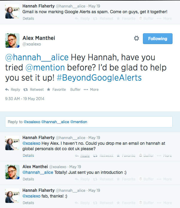 Например, компания Mention отслеживала фразы «альтернативы Google Alerts» и «Инструменты сбора упоминаний», что помогло им находить людей, которые заинтересованы в их сервисе.