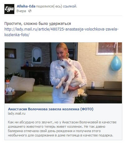 Вы не любите козликов? Да вы просто не умеете их готовить, посчитали сотрудники «Афиша.Еда» и опубликовали в Facebook рецепт козленка в молоке, сопроводив пост нелицеприятной фотографией и текстом: «Козленок легко помещается в стандартную домашнюю духовку, особенно, если связать ему ноги».