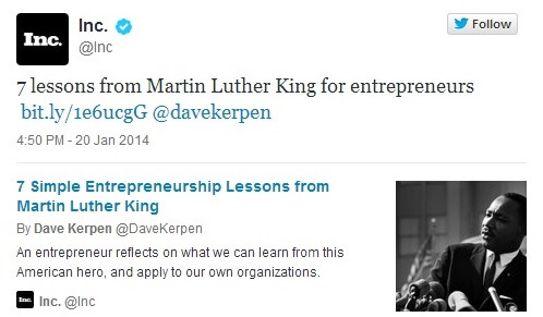 А еще Мартина Лютера Кинга интересовал бизнес. Предприниматели - вот о ком должны думать жители США в этот день.