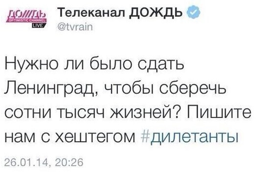 Опросы считают хорошим методом вовлечения аудитории. Но только в случаях, когда вопросы тщательно продуманы. В противном случае опрос может выйти бренду боком. Как и случилось с телеканалом «Дождь». Разместив неоднозначный вопрос на сайте и в Twitter-аккаунте, компания спровоцировала волну негатива в свой адрес.