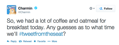 Хэштеги могут добавить немного юмора к вашим постам и выполнить задачу шутки. Например, Charmin известен своим хэштегом #TweetFromtheSeat, который призывает пользователей твитить из туалета. Данный хэштег стал настоящей вирусной сенсацией и помог привлечь внимание как к Twitter-аккаунту Charmin, так и к самому бренду.