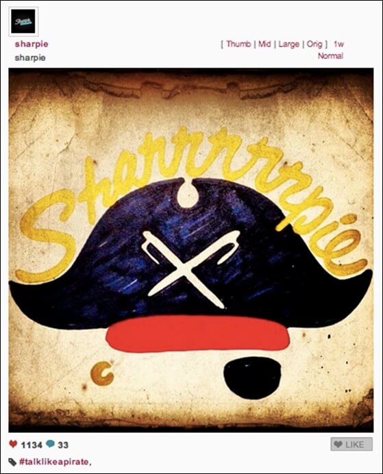 Производство перманентных маркеров – не самое креативное и веселое занятие в мире. Однако бренд Sharpie упорно с этим не соглашается. В своем Instagram-аккаунте Sharpie показывает, как можно использовать его продукты: лента полна постов с картинками, выполненными фирменными маркерами. При этом многие рисунки брендированы, что, однако, благодаря креативному подходу нисколько не мешает пользователям.
