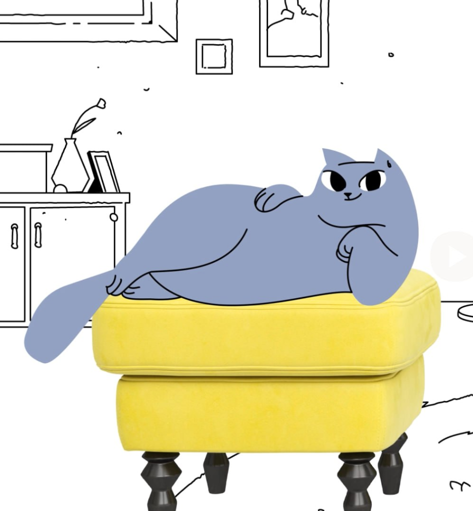 Когда в сети стали появляться многочисленные картинки, сгенерированные нейросетями, креативная команда Lazurit решила провести эксперимент и «заказать» изображение своего любимого маскота у самой мощной нейросети Midjourney. Вдруг искусственный интеллект справится лучше дизайнеров? Исходным изображением послужил скриншот из ролика, где счастливый кот развалился на только что приобретенном специально для него пуфе.