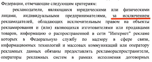 Однако информация, направленная на привлечение внимания к конкретному лицу, его услугам, выделяя их среди подобных (например, стационарный баннер на каждой странице сайта, не связанный с содержанием страниц), может быть признана рекламой. Для такой информации применяются нормы закона о рекламе, включая требования статьи 18.1 относительно маркировки.