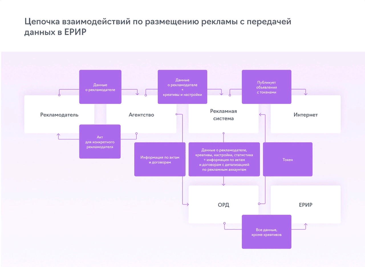 Проще говоря, рекламораспространителю необходимо заключить договор с ОРД, который будет осуществлять передачу данных в ЕРИР. Самостоятельная отправка данных туда невозможна.