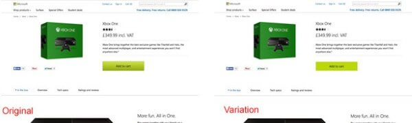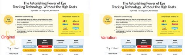 В ходе эксперимента сравнивалась реакция пользователей на изначальный вариант страницы и страницу с немного измененным дизайном.