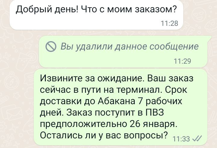 Пример из практики: В мессенджер обратился покупатель, который неправильно указал номер телефона при оформлении заказа. На телефон при получении заказа должен был прийти код и без него товар из пункта выдачи заказов не забрать. В саппорте обращение пропустили и ответили покупателю только через час, что телефон изменен. Клиент не стал дожидаться и просто отказался от получения.