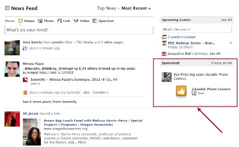 Другой инструмент для продвижения в Facebook – Sponsored Stories. Такой формат рекламы размещается справа и ему доступны настройки таргетинга. Основное преимущество этих объявлений в том, что их увидят люди, которые еще не являются фанами бренда.