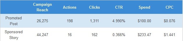 Таким образом, вовлечение и CTR Promoted Posts оказалось выше, чем у Sponsored Story, а цена за клик - значительно ниже.