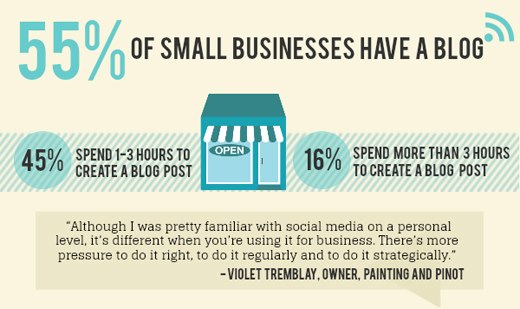 Большая часть (55%) этой аудитории имеет «корпоративный» блог. 45% инвестируют от 1 до 3 часов в создание своих постов, 16% — от 3 до «бог знает сколько». При этом создание контента отнимает большую часть времени, затраченного на соцмедиа вообще.