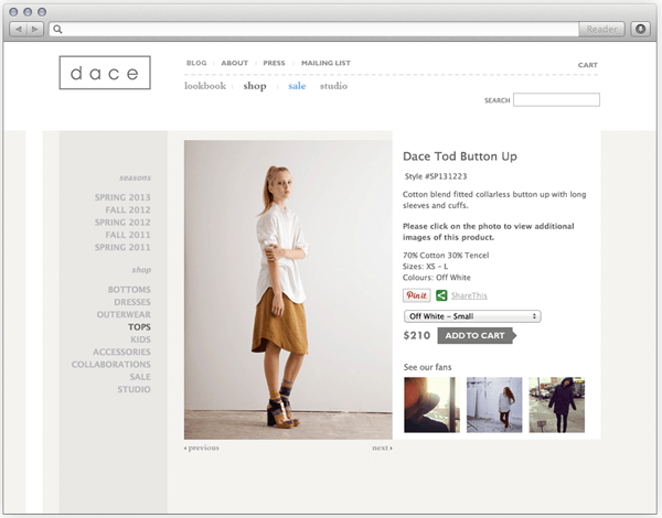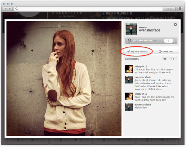 Итак, конкурс запущен, контент генерируется, галерея пополняется. Т. к. все фотографии сделаны в одежде определенной марки, пользователи, которые просматривают фотографии, могут захотеть купить определенный элемент одежды. Не стоит заставлять пользователей 20 минут бродить по сайту в поисках нужного товара и в итоге узнать, что его уже год как нет в наличии – просто добавьте к фотографиям ссылки на страницы продуктов.