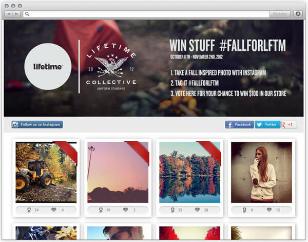 - создайте галерею. Пользователи хотят не только постить свои фото, но и оценивать другие. Поэтому выгружайте все конкурсные фотографии на специальный сайт или в Facebook-приложение, либо создайте инструмент для автоматической загрузки (но не забывайте про модерацию).