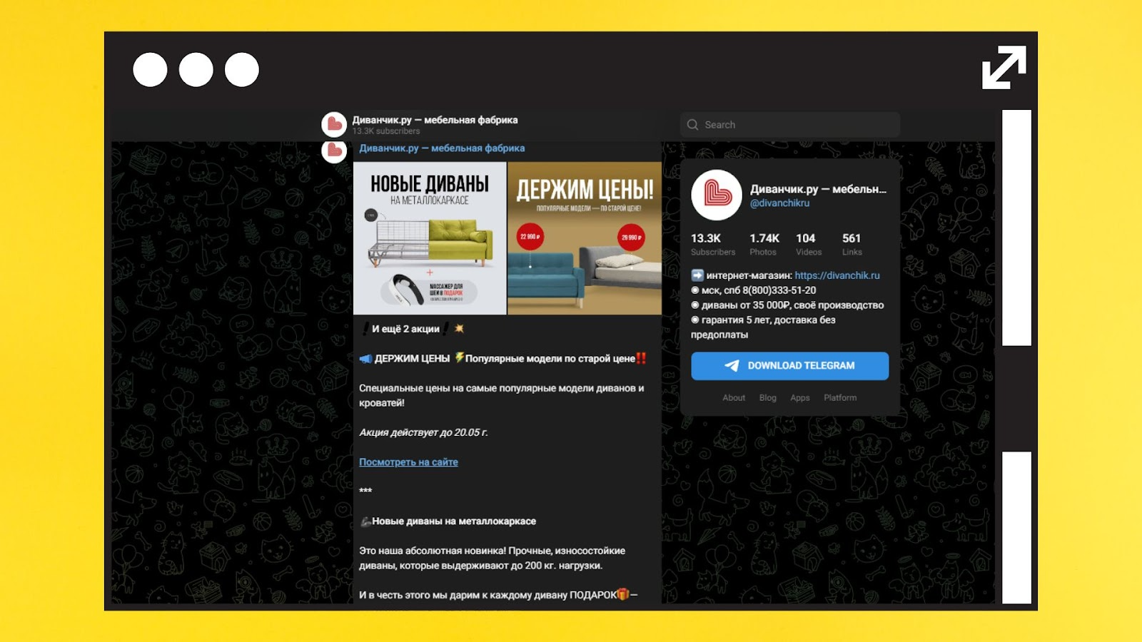 Популярный мессенджер, который стал своеобразной соцсетью для раскрутки бизнеса. В Telegram можно создать чат-ботов для упрощения общения с аудиторией по конкретным вопросам.