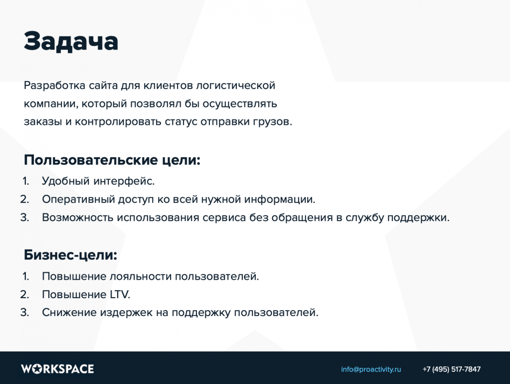 Пока кратко, самую суть содержания задачи. Что делаем, для кого, а также какие пользовательские и бизнес-цели преследуем.