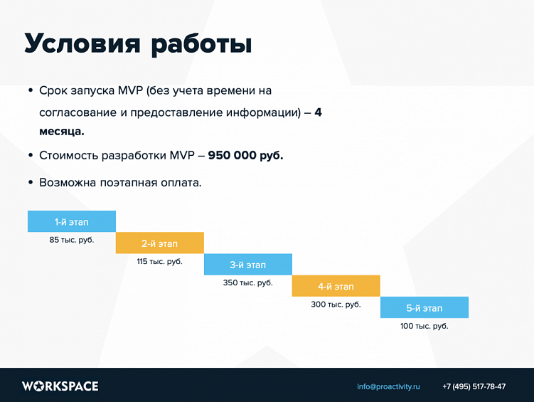 - Из чего будет состоять работа, ее содержание. Например, разработка сайта, запуск контекстной рекламы, ведение социальных сетей. Плюс – краткое пошаговое описание.